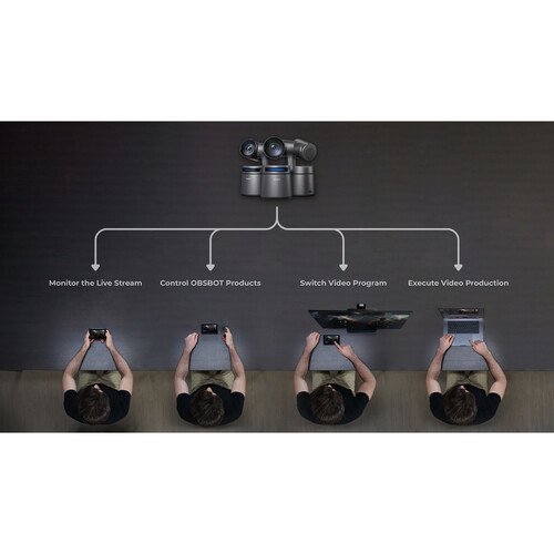 Controla al presentador mediante la pantalla táctil, el mando a distancia inteligente Tail Air, un navegador web o la aplicación multicámara Live en tu dispositivo móvil o tableta compatible.